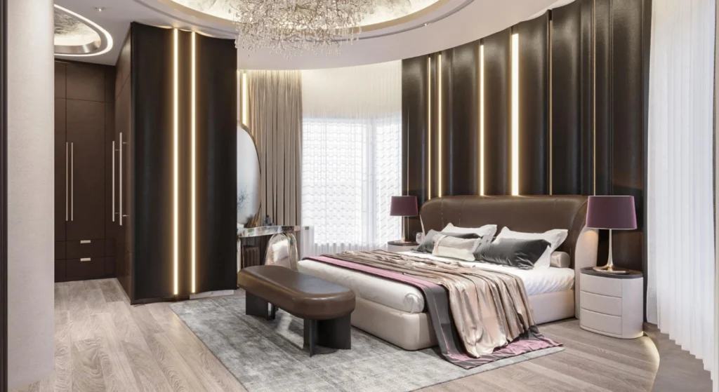 Soft upholstered headboards, warm ambient lighting, and refined finishes create a bedroom that feels both luxurious and deeply personal — your perfect retreat at day’s end.